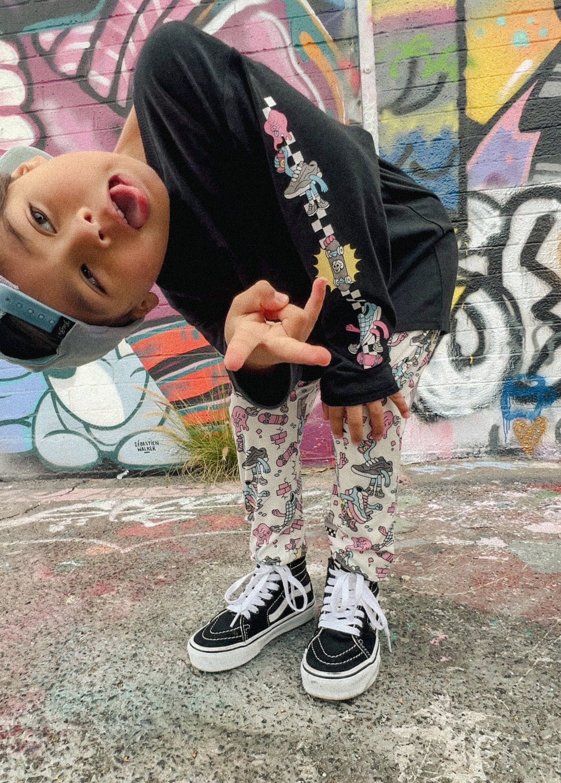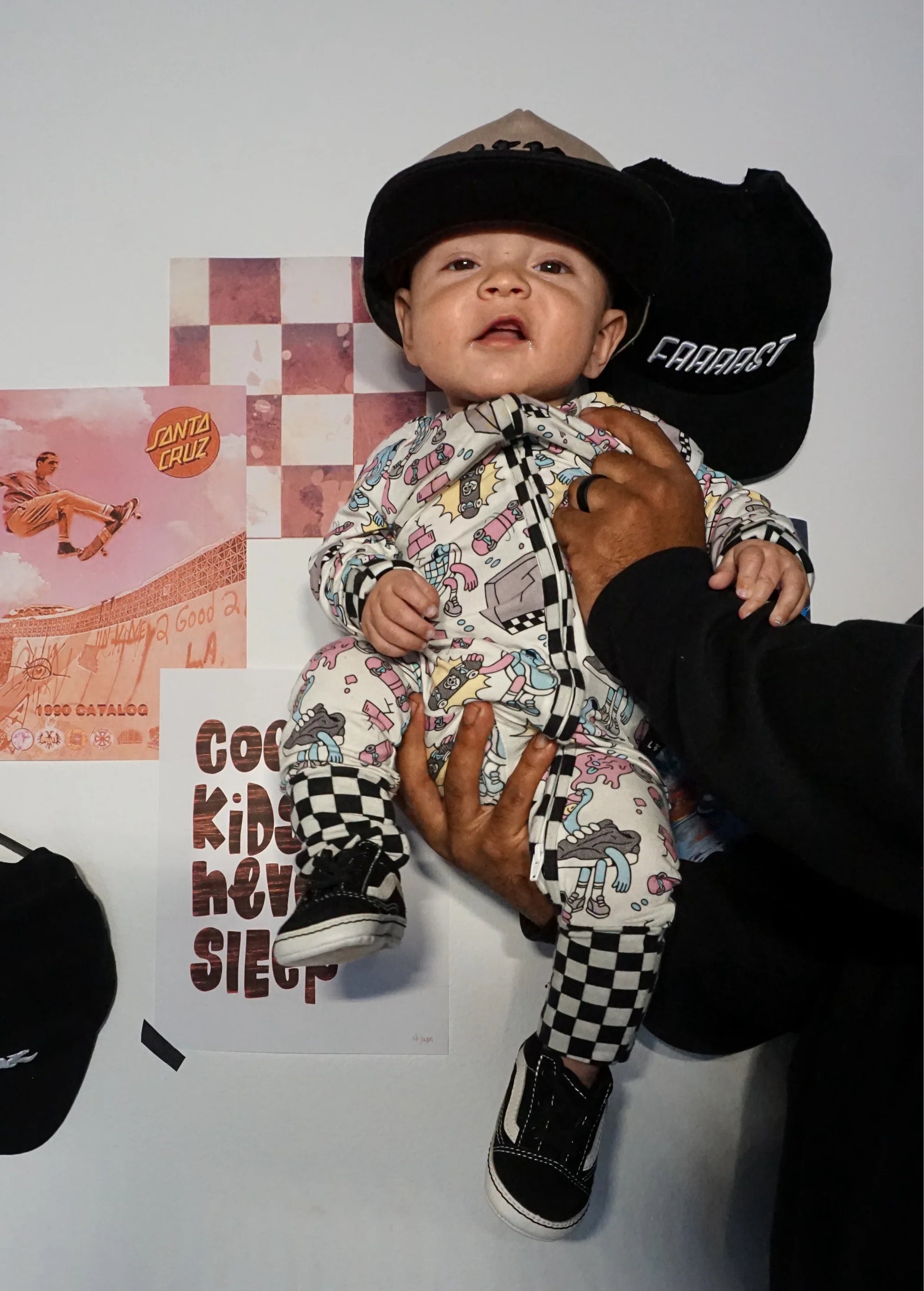 Keeping it cool and keeping in comfy in our bamboo viscose kickback set. Sizes NB-18-24M are a classic long sleeve romper with a two way zipper while 2T-6T are a two piece matching long sleeve/pant set. Even softer than they are cool.