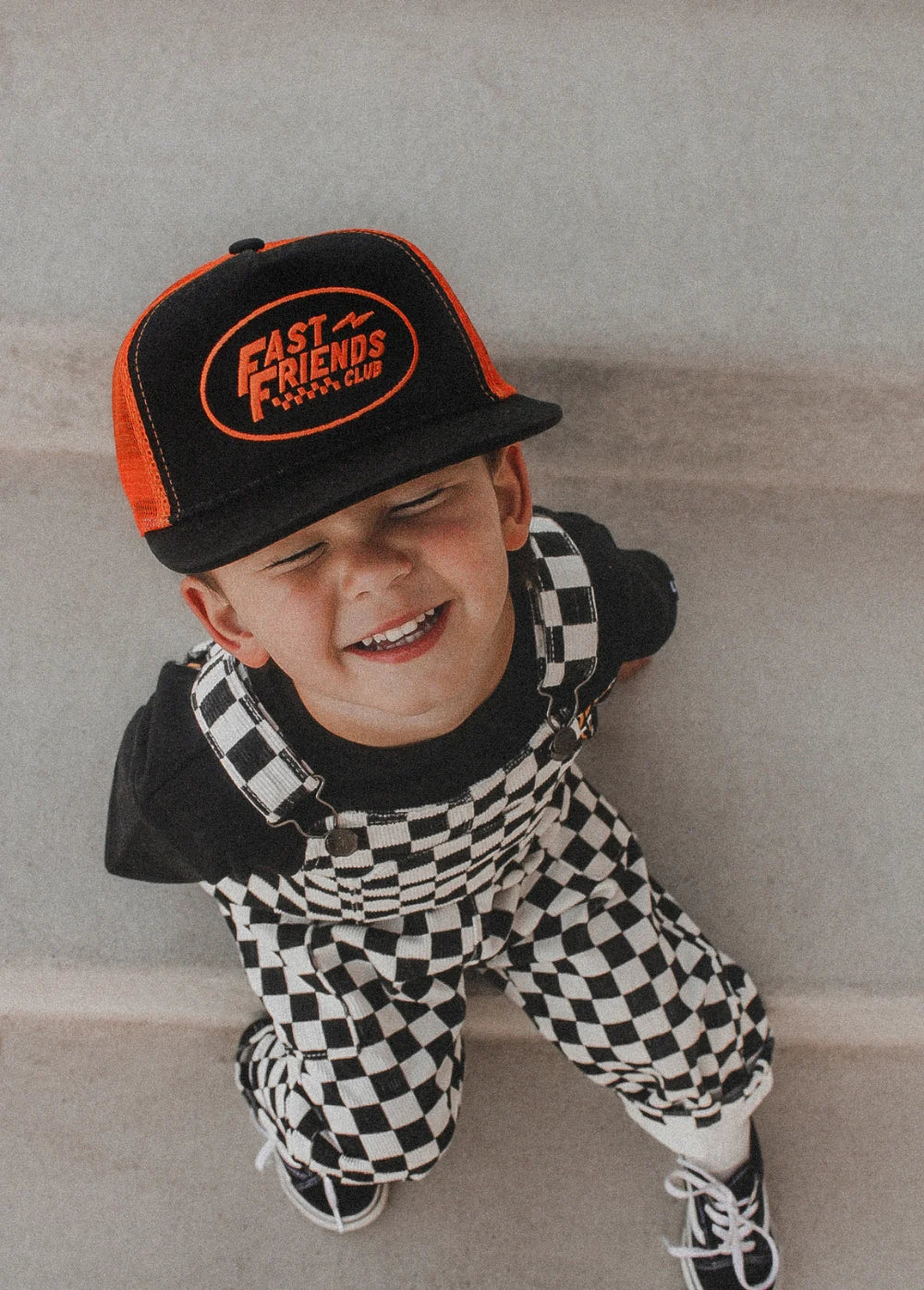 Fast Friends Forever. The FAST FRIENDS CLUB snapback is what we would make if we had a kids club full of mini speed demons that sold merch...(and that's not sounding like a bad idea). With bold orange embroidery on a black crown, high-vis mesh, and custom clip labels/tape - this one’s a yes for me.
