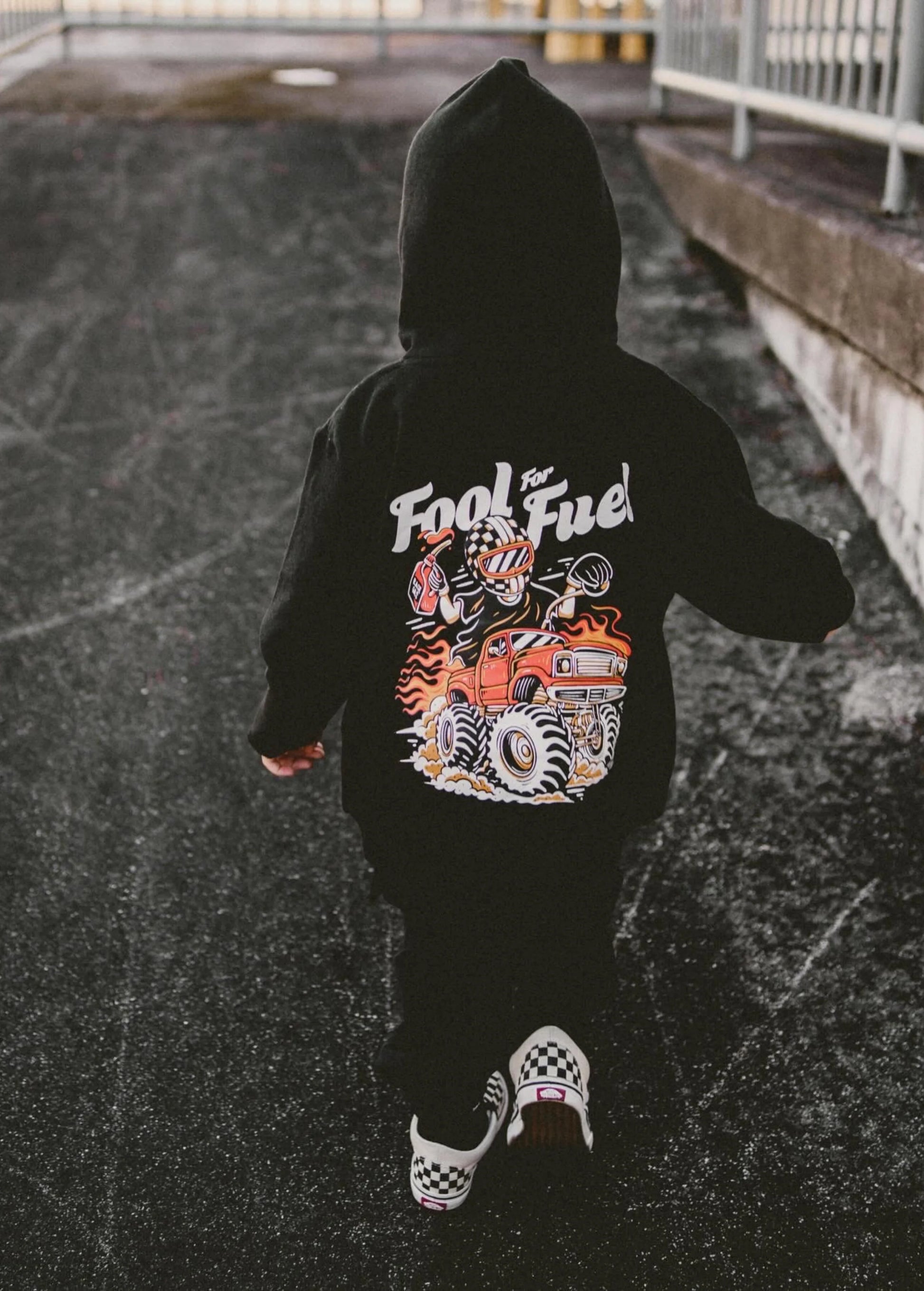 FOOL FOR FUEL. This is NOT your average truck graphic found at your local big box retailer. This custom Little Trouble Monster Truck was uniquely designed down to the Race Gas can.