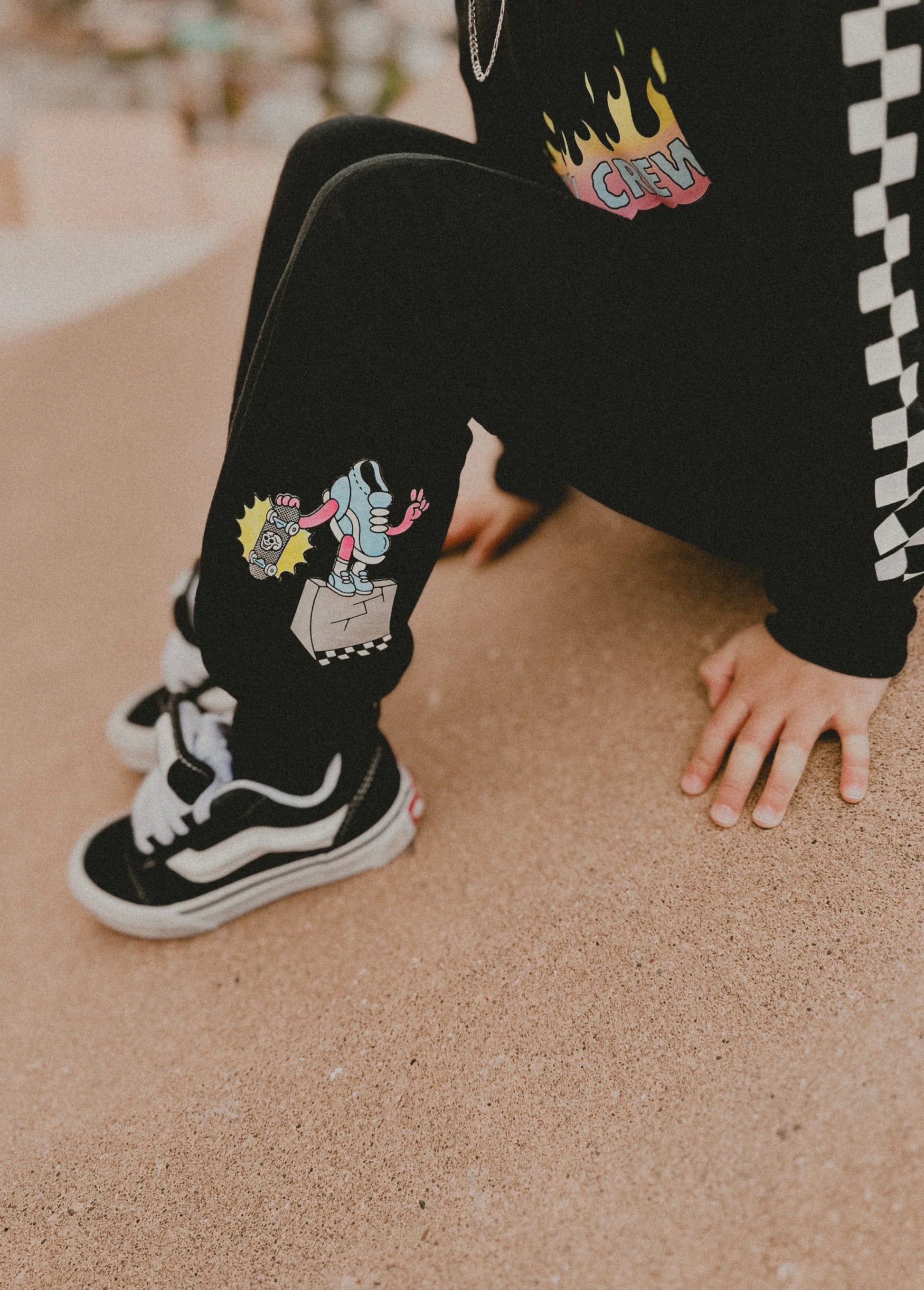 YOU GUYS...WE MADE OUR FIRST SETS! Meet your littles new favorite extra comfy cozy joggers for the first time have matching hoodies and long sleeves! Our Concrete Kickback Crew Joggers come in tan, black and tie dye and quite literally match the hoodie and long sleeve release making the cutest skater capsule of all time. Don't forget to add a hoodie or long sleeve to complete the look!