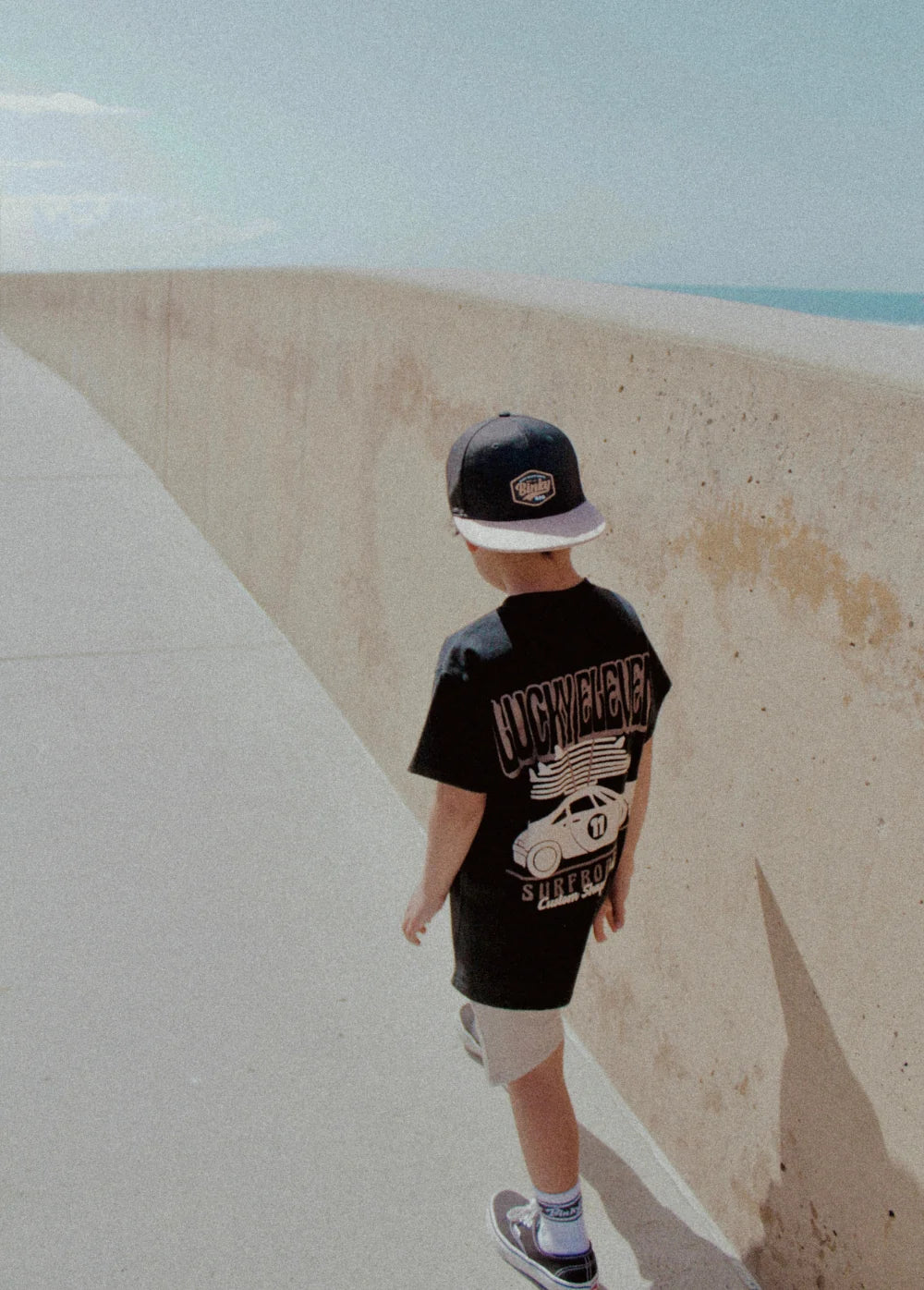 Strap the boards on your vintage Porsche and let's hit coast highway...a summer dream come true. Lucky Eleven comes in brown (our traditional organic cotton/bamboo viscose blend) and then black in our new 100% organic cotton blend.