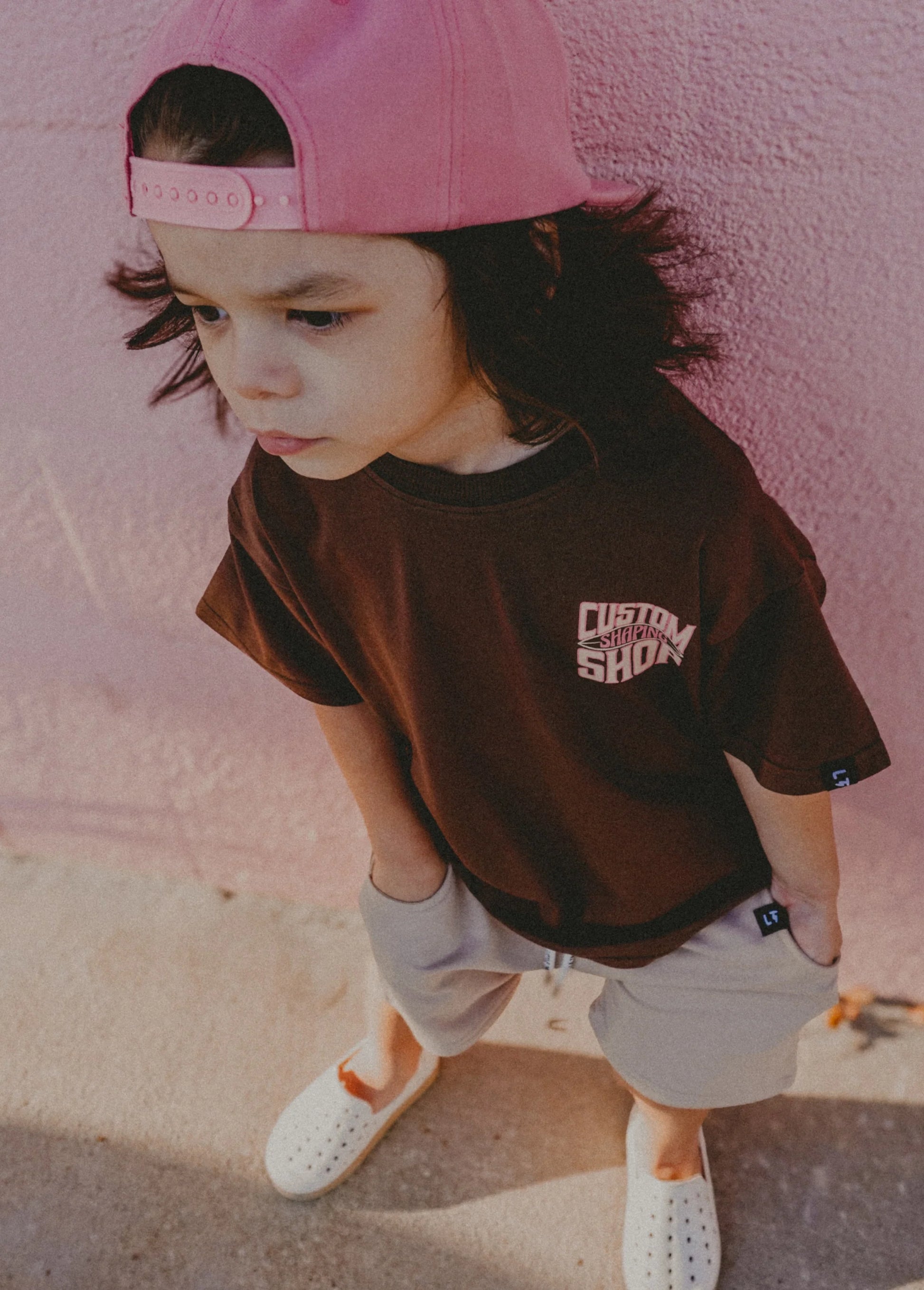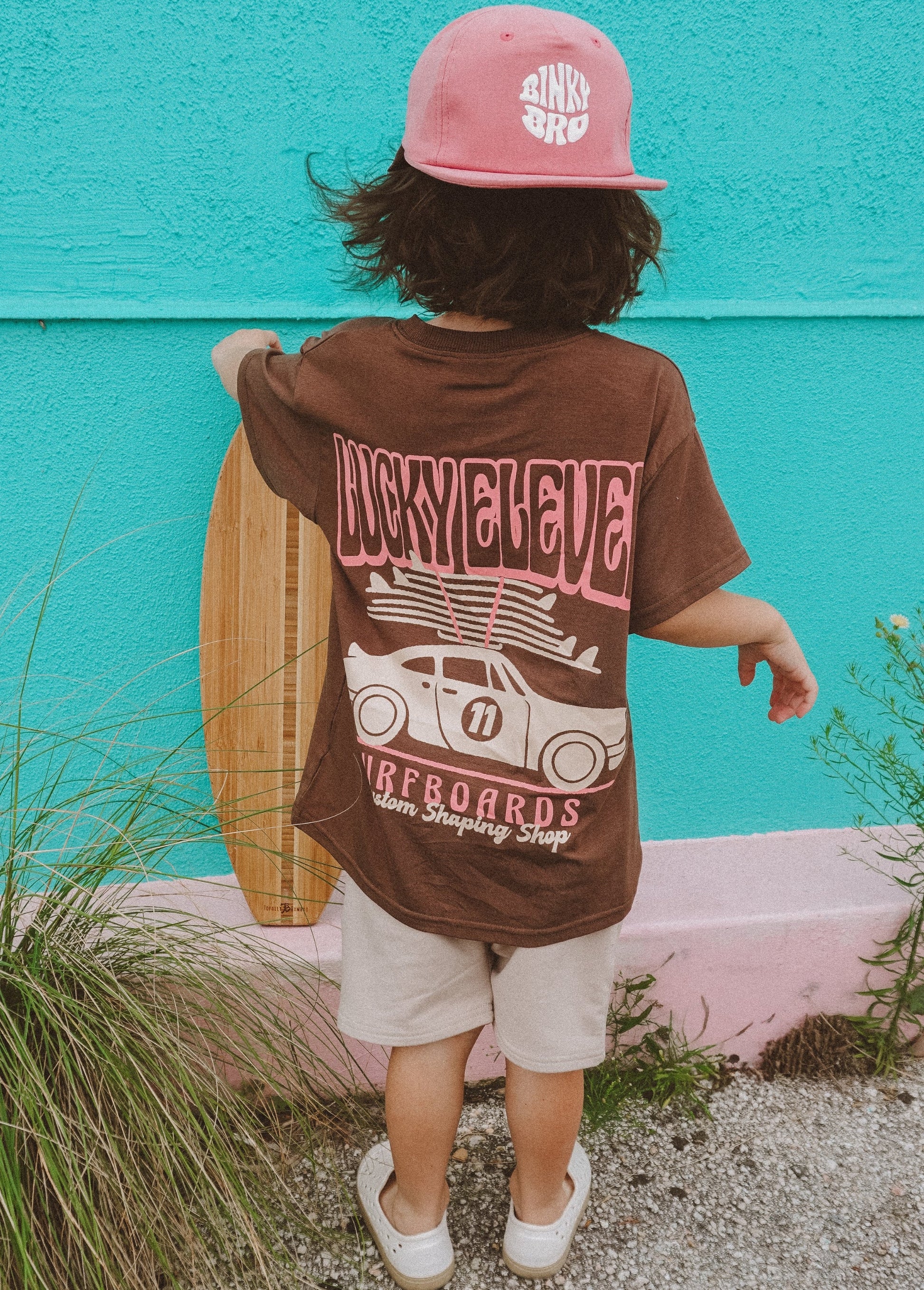 Strap the boards on your vintage Porsche and let's hit coast highway...a summer dream come true. Lucky Eleven comes in brown (our traditional organic cotton/bamboo viscose blend) and then black in our new 100% organic cotton blend.
