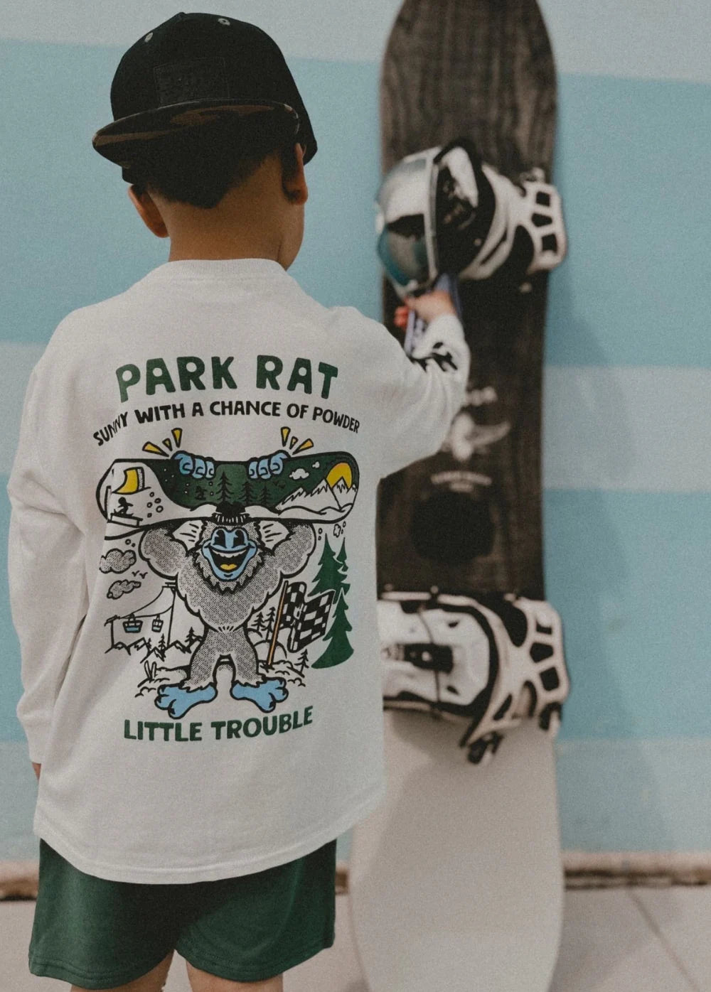 For all your park rats out there...today is sunny with a chance of POWDER. The perfect long sleeve for those winter days on the mountain!