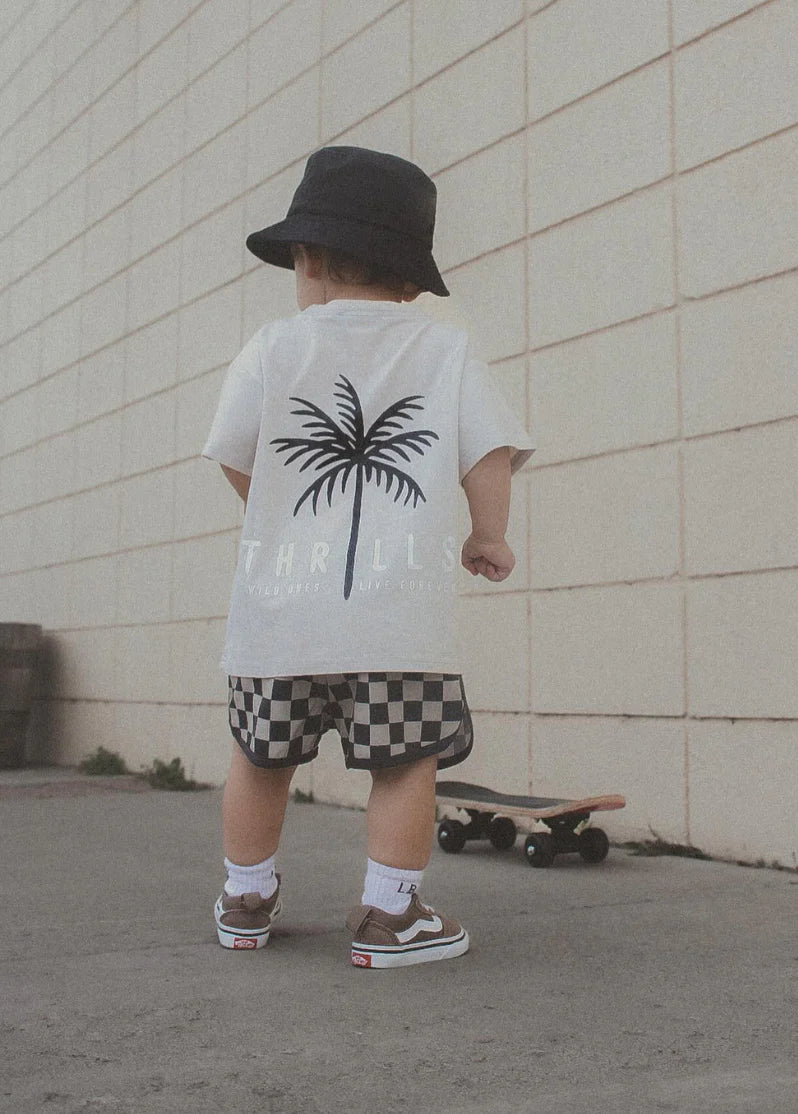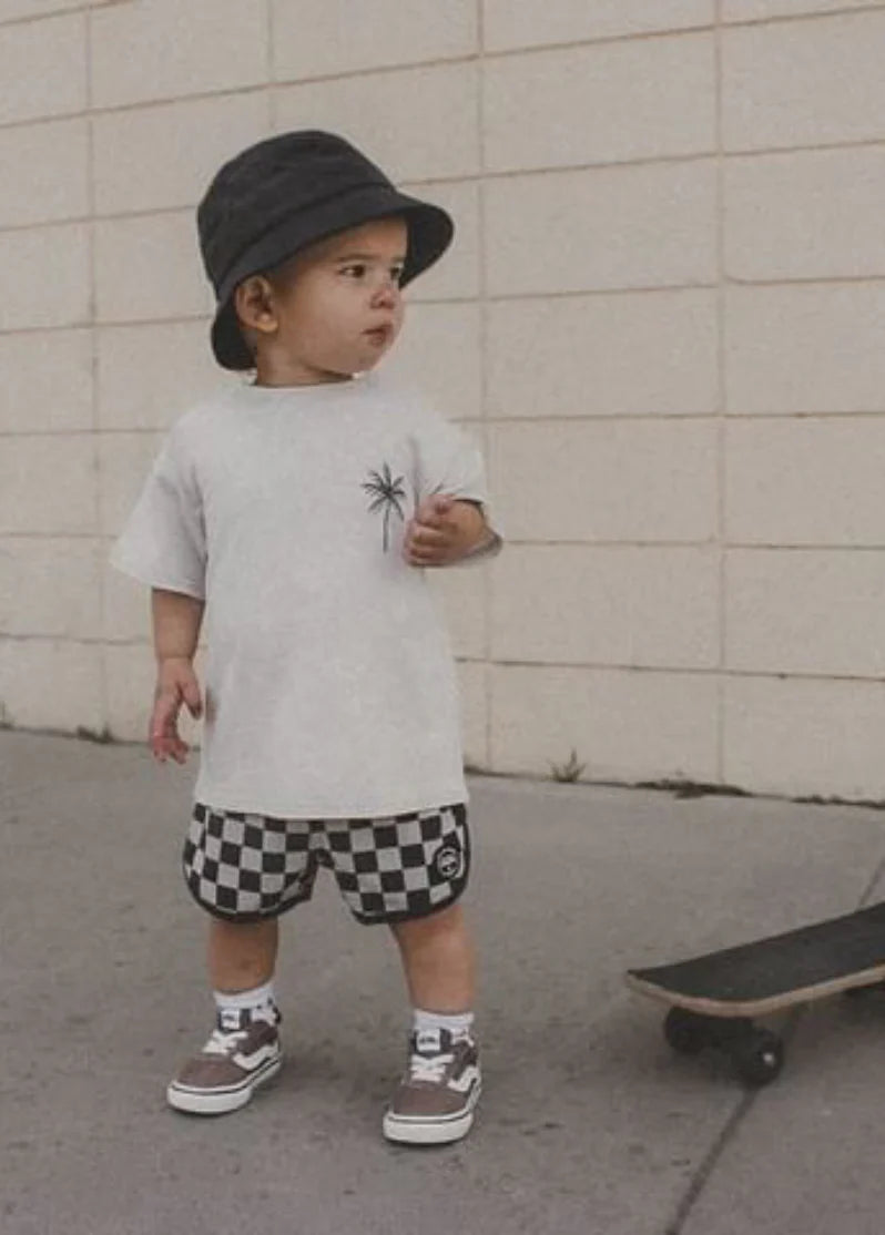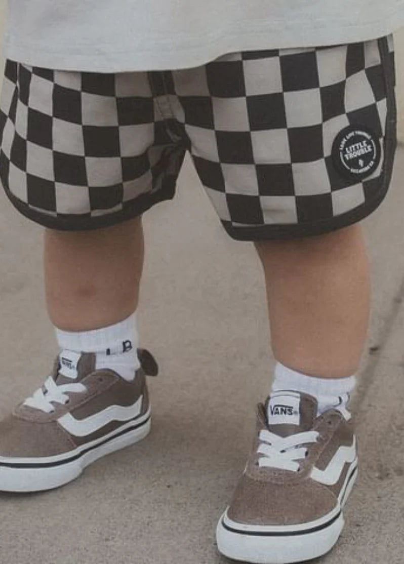 It’s 75 and sunny, you’re letting the waves chase you up and down the beach and life is GOOD in these perfect checkboard boardies. Here’s to a sweet and salty summer ☀️