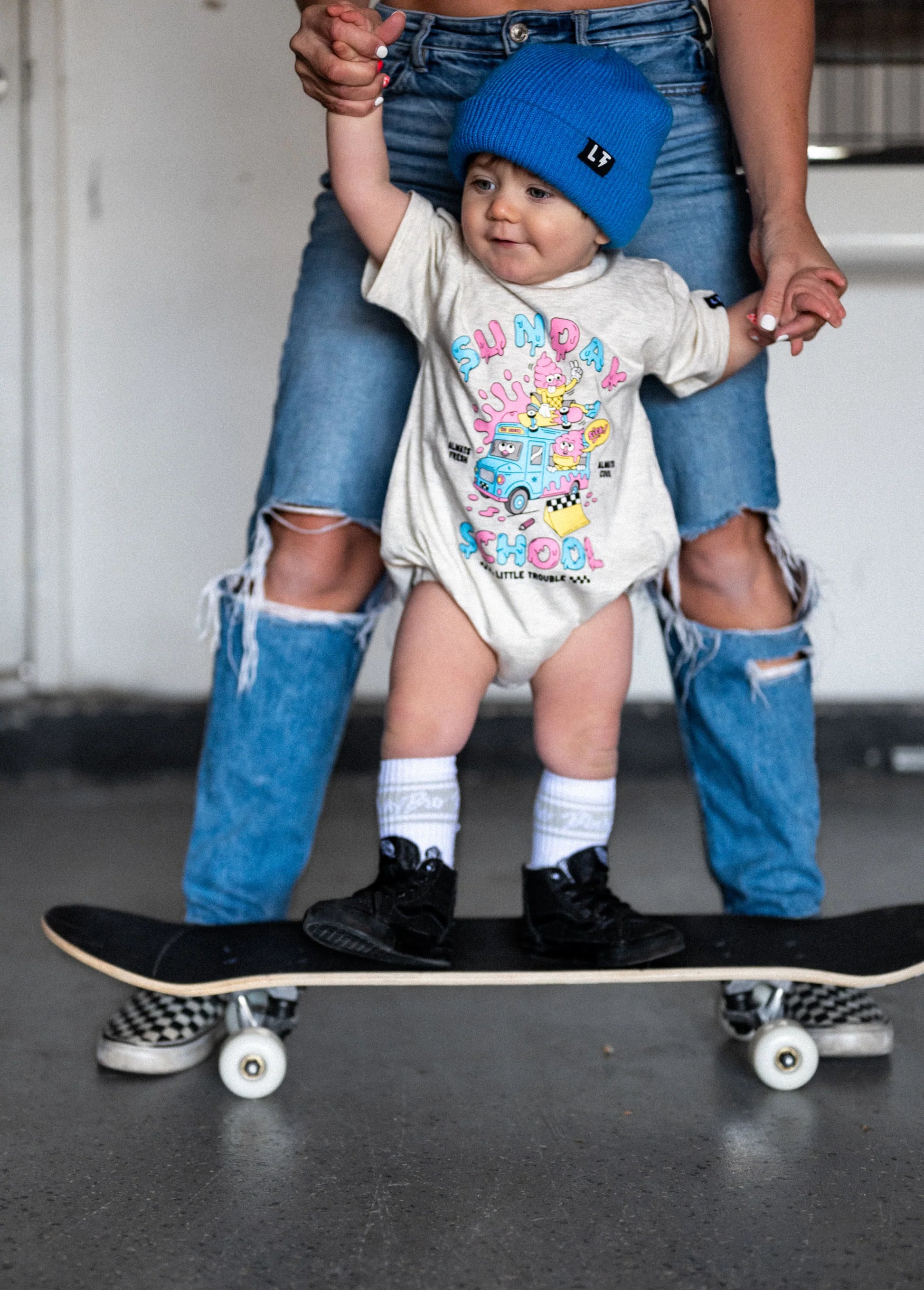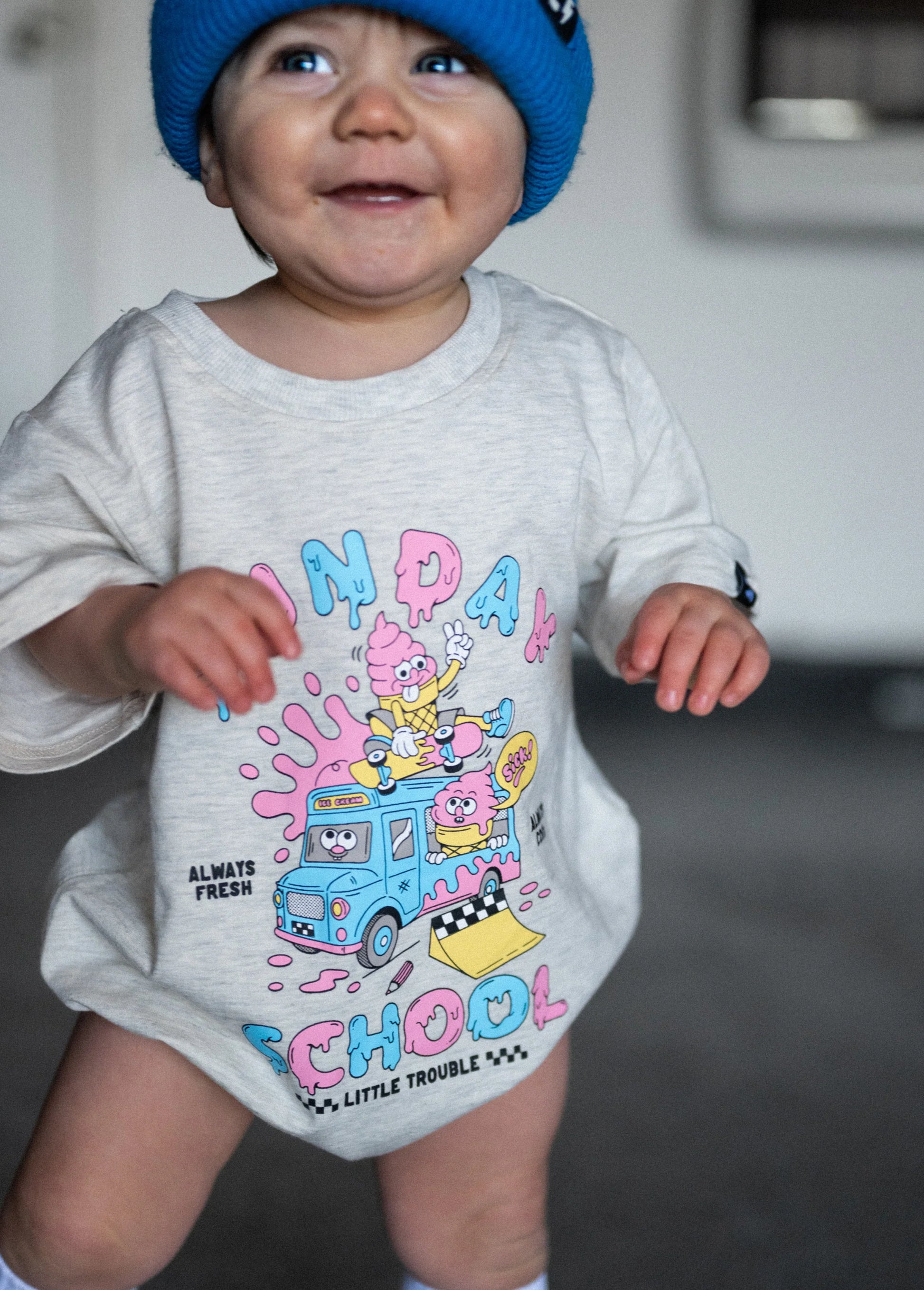 I scream, you scream, we all scream for... a baby in an oversized romper 🥹 The Sunday School collection was inspired by my favorite summer ice cream spot when the only care I had in the world was cone or shake.
