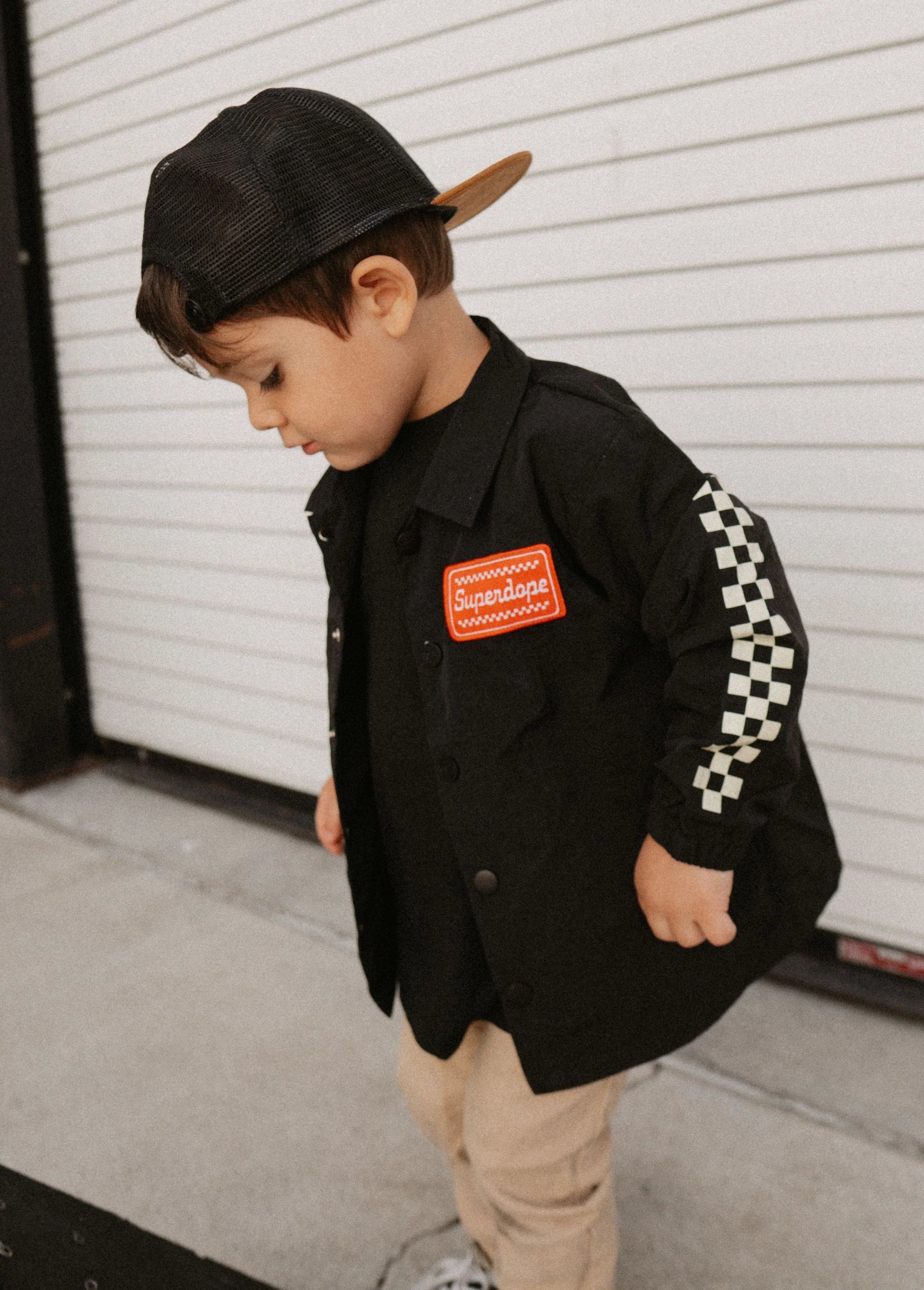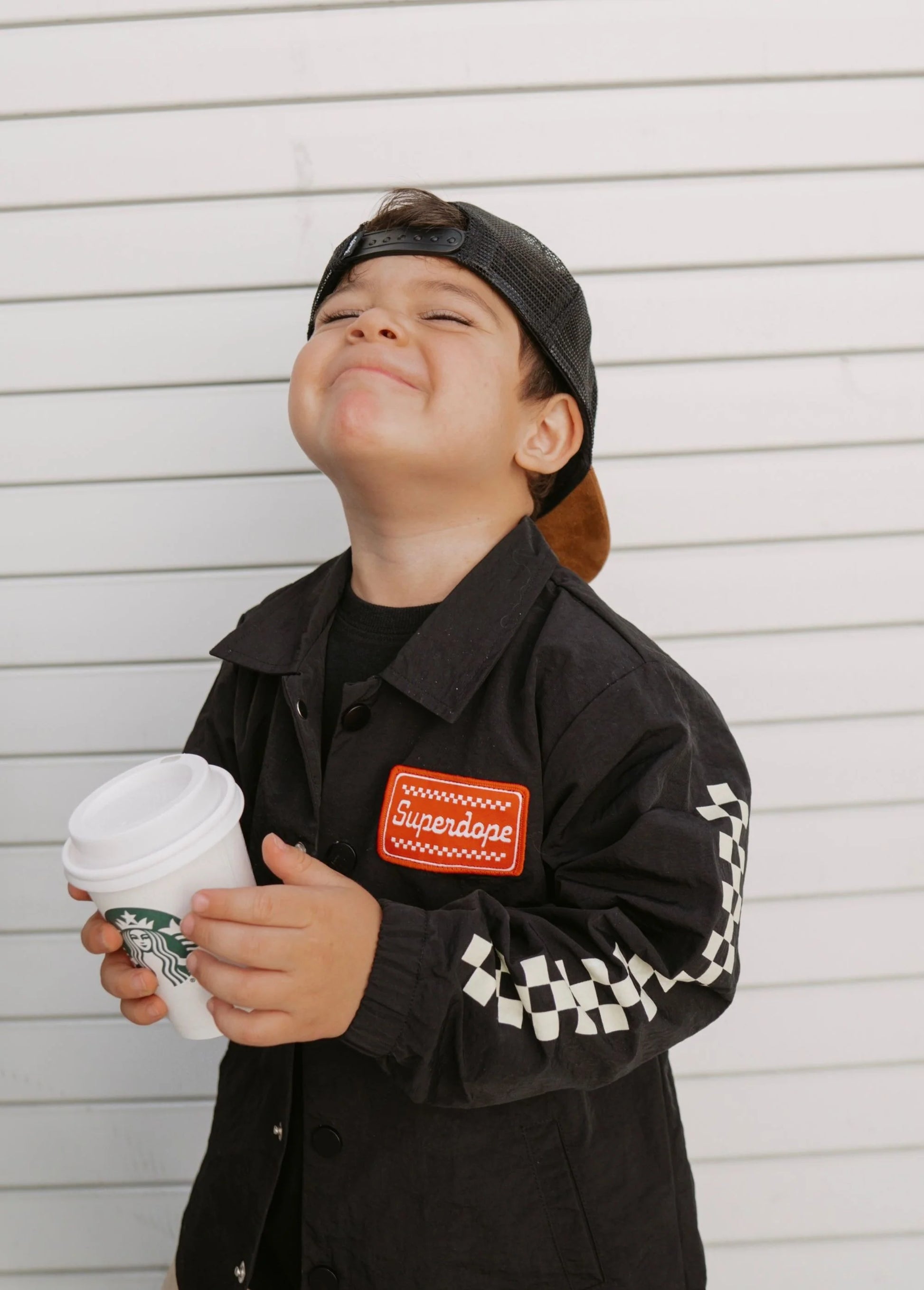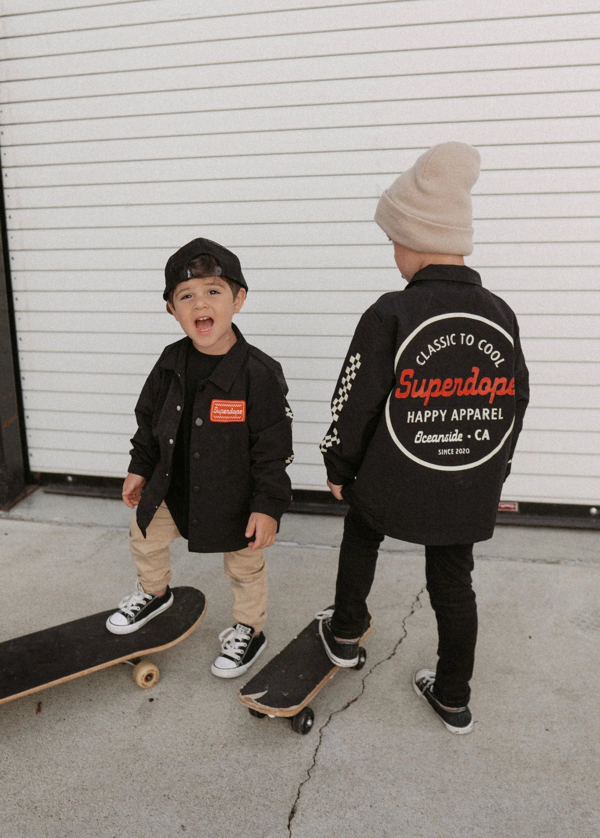 All I have ever wanted is to make you smile when you see your kids wearing my clothes...so here's to HAPPY APPAREL! The throw-on goes-with-everything jacket you've been WAITING FOR! Anytime you head out the door for practice, to the track, to school, to grab brunch or browse the toy aisle at target with your mama...the superdope coach jacket is the thing for you.