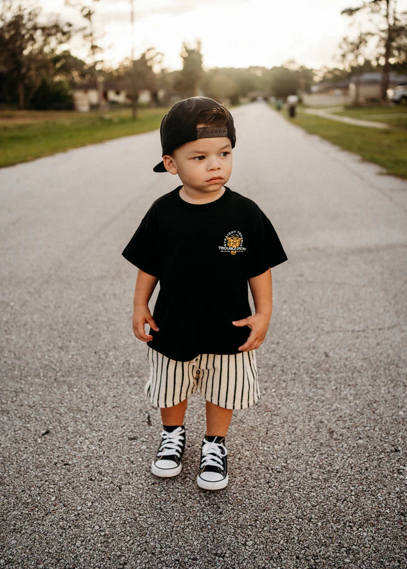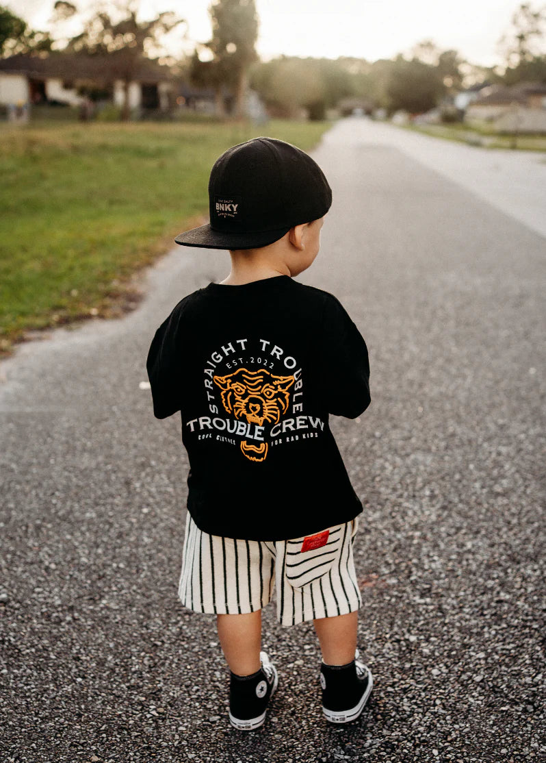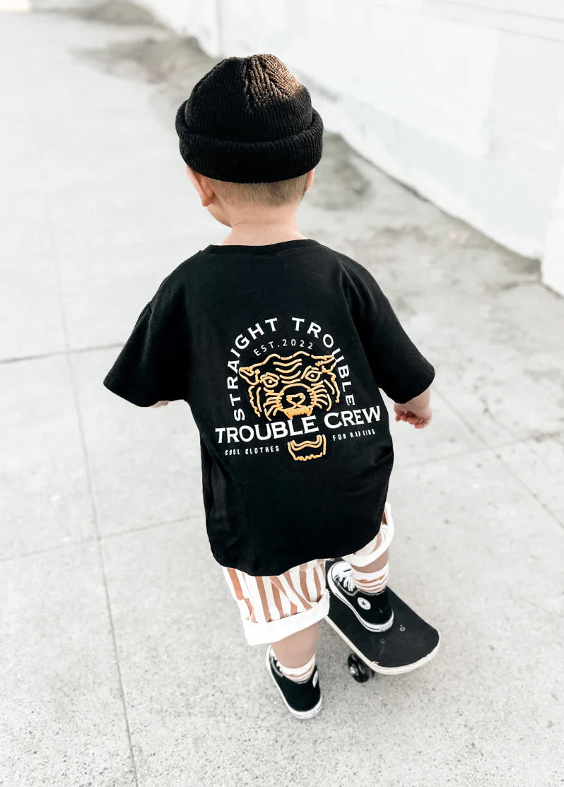The Trouble Crew T-shirt is our new brand staple. A true necessity for any up-to-no-good, straight trouble making little mischief makers. The puff print 3D effect on these t's makes them that much more special. Sustainably made from the signature Little Trouble blend (perfect parts organic cotton + bamboo viscose), this lightweight and buttery soft T is made to be worn and loved many washes later.