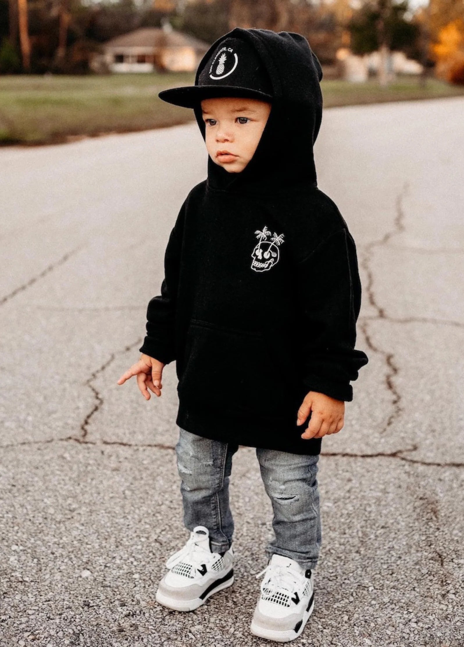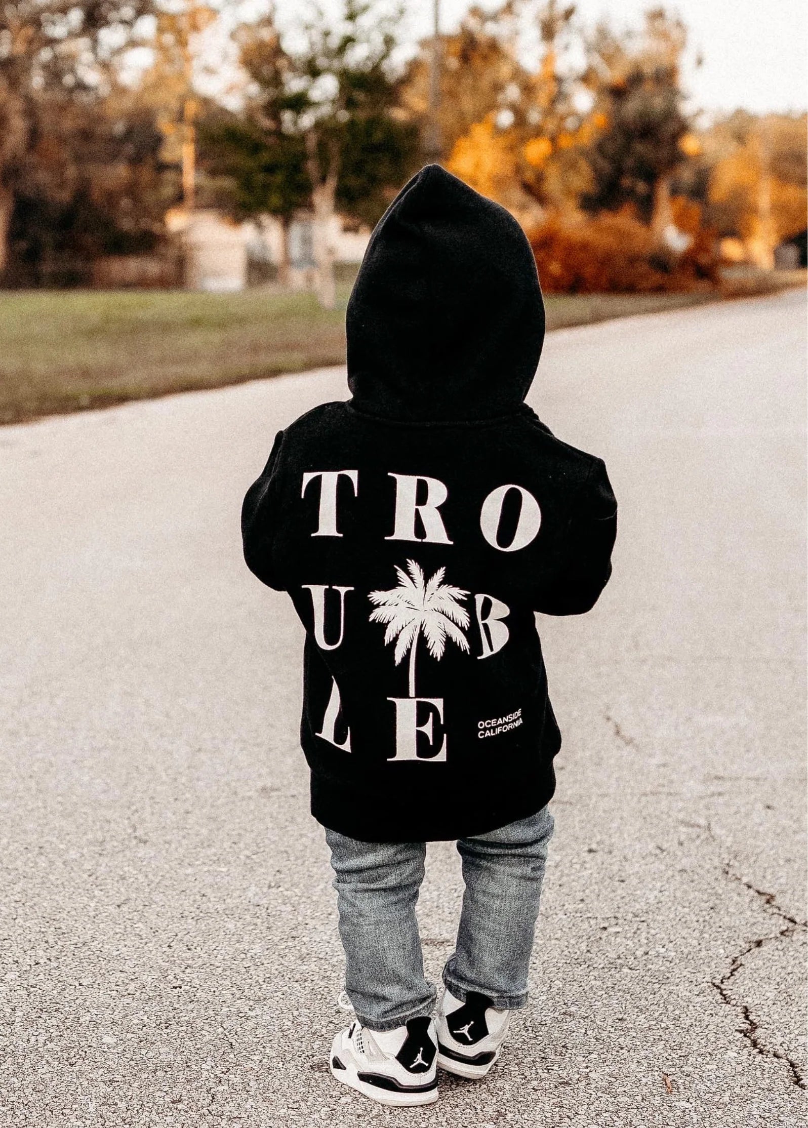 The Trouble In Paradise Hoodie is the ultimate cool kid style. Like a perfectly placed, tall palm tree at sunset. Sustainably made from the signature Little Trouble blend (perfect parts organic cotton + bamboo), this lightweight hoodie is made to be worn and loved without fading.