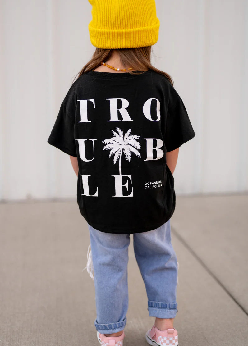 The Trouble In Paradise T-shirt is the ultimate cool kid style. Like a perfectly placed, tall palm tree at sunset. Sustainably made from the signature Little Trouble blend (perfect parts organic cotton + bamboo viscose), this lightweight and buttery soft T is made to be worn and loved many washes later.