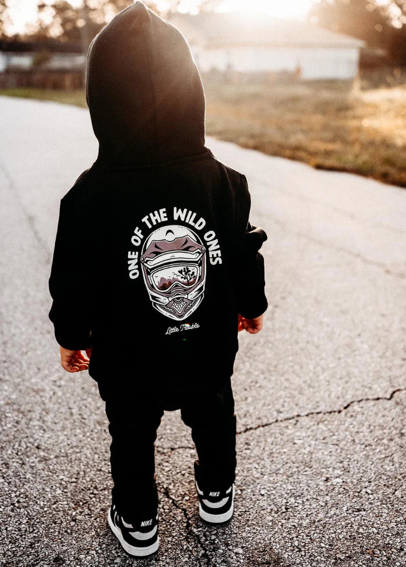 The Wild One Hoodie is made for kids who rip. Inspired by the SoCal desert and all the little trouble makers out there. Sustainably made from the signature Little Trouble blend (perfect parts organic cotton + bamboo), this lightweight hoodie is made to be worn and loved without fading.